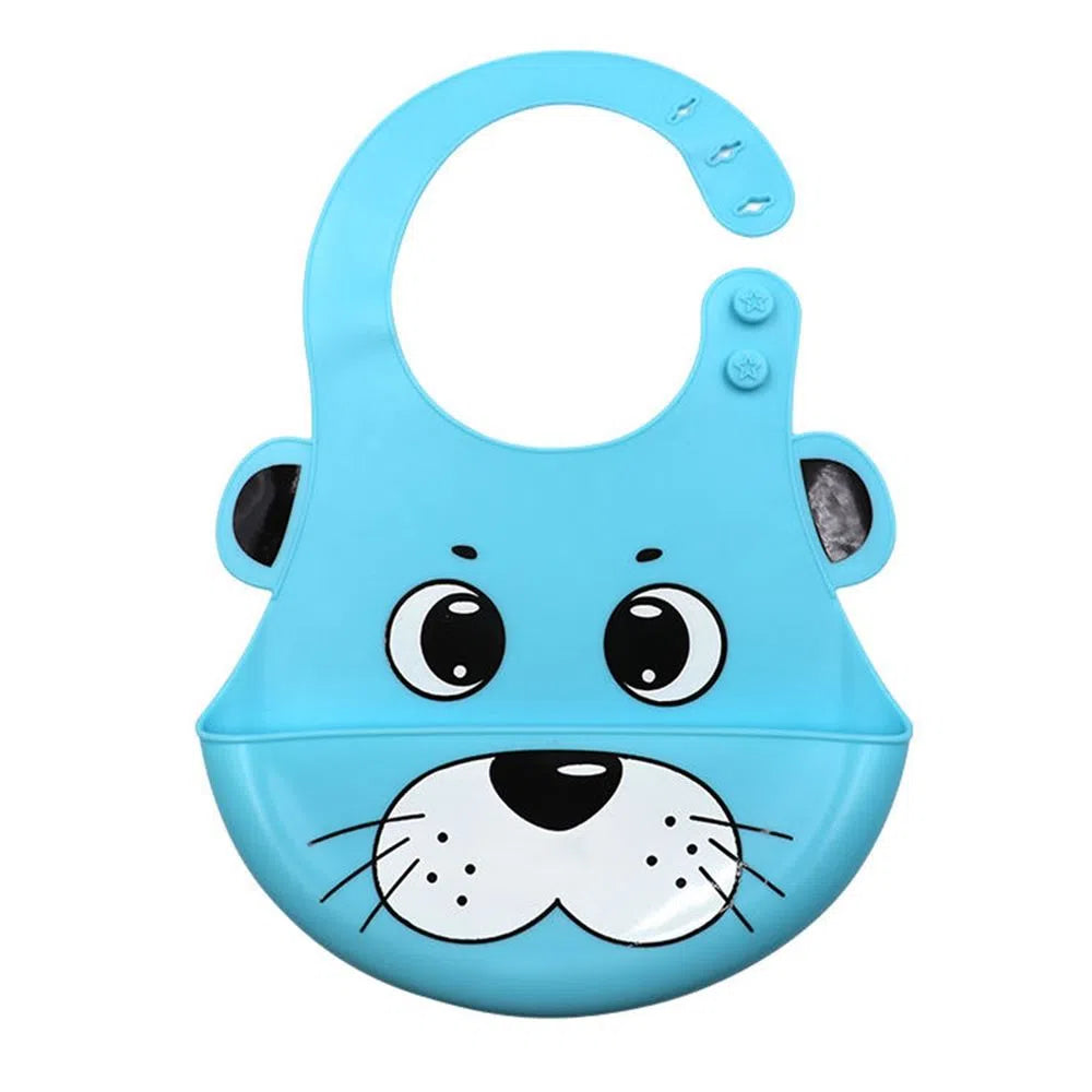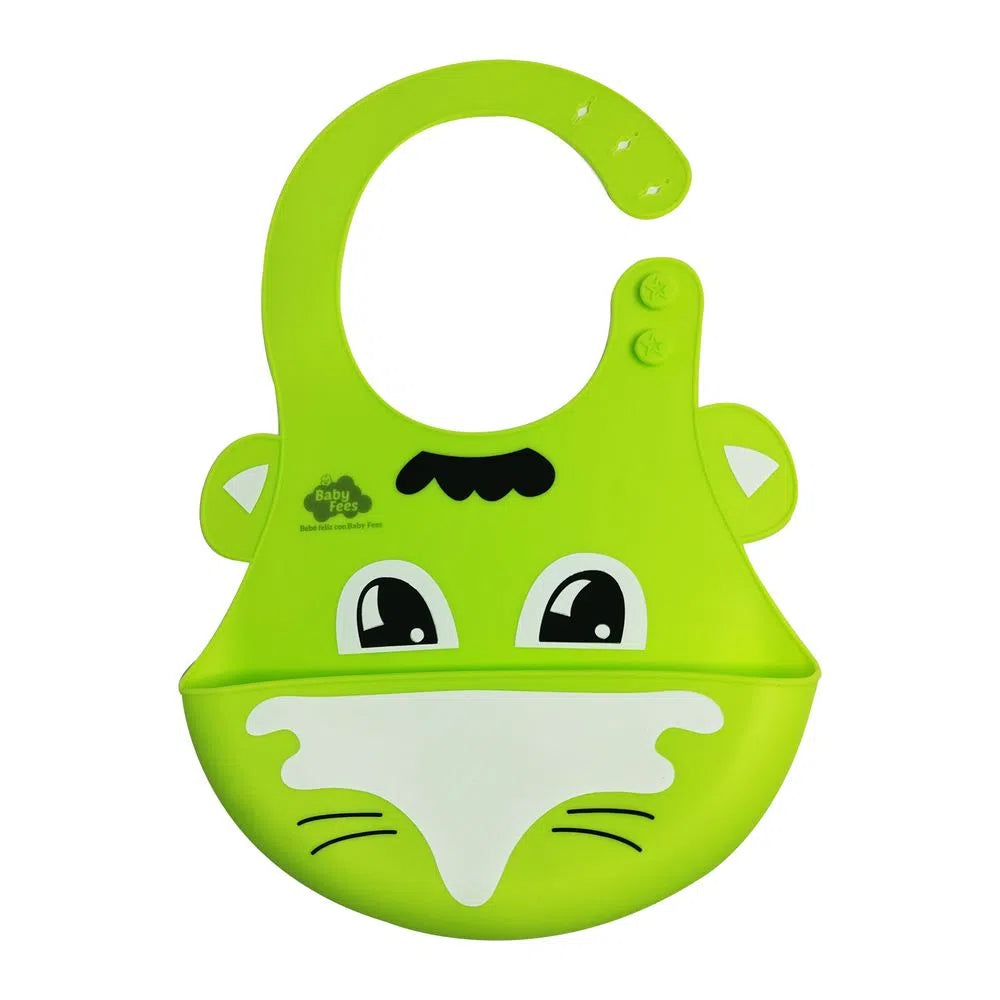 A diferencia de los baberos de tela, este babero de silicona es resistente al agua. Posee un receptor de alimentos que puede detener la comida o derrames líquidos mientras los niños comen.