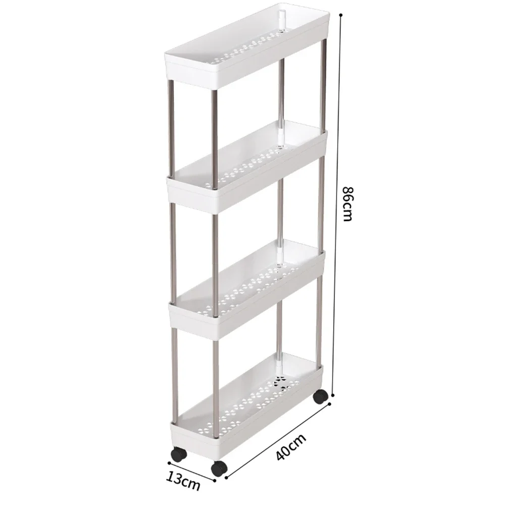 Aprovecha cada rincón de tu casa con este estante organizador delgado y móvil, perfecto para espacios pequeños. Ideal para baño, cocina, lavandería o dormitorio.