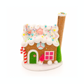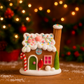 Esta encantadora casita de jengibre combina colores vibrantes y detalles con efecto nevado que le dan un toque mágico y festivo a cualquier rincón del hogar.