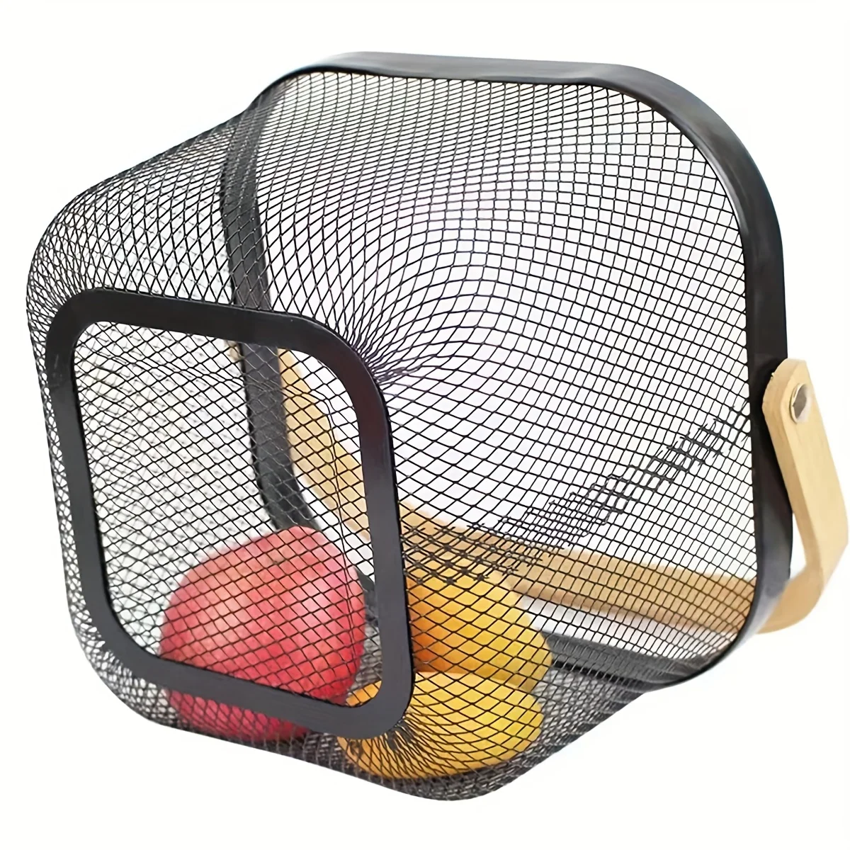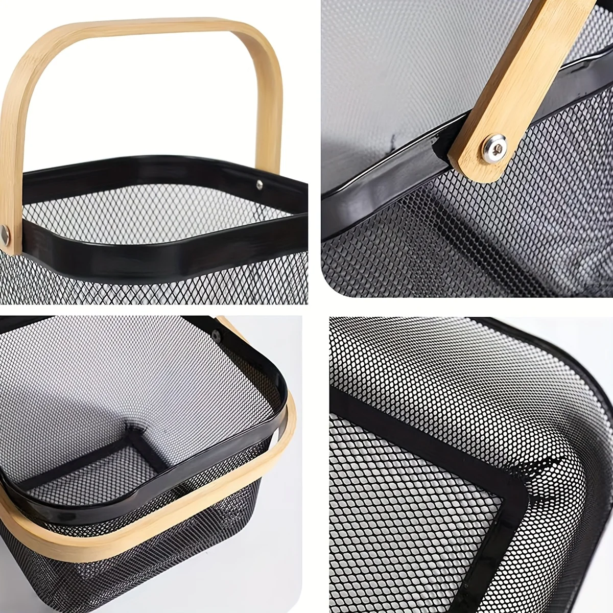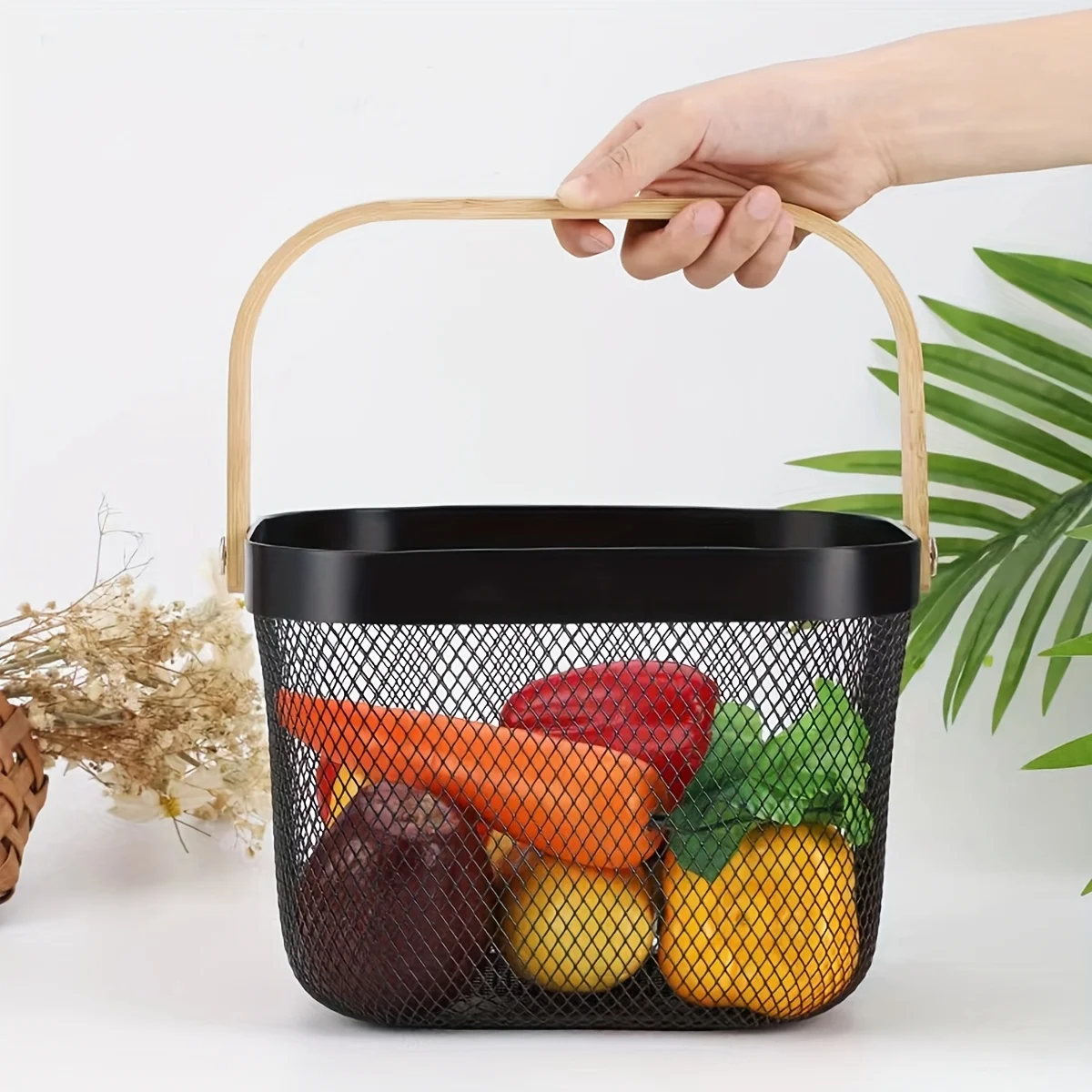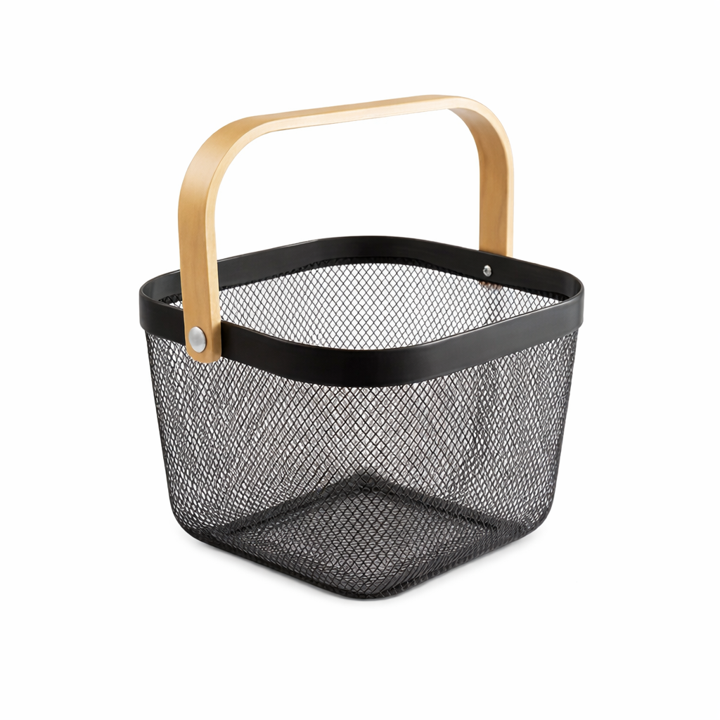 🍎 Canasta Organizadora de Frutas con Asa de Madera