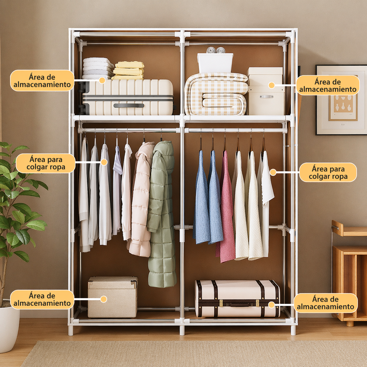 Diseñado para maximizar el espacio y mantener tus prendas protegidas, limpias y siempre listas para usar.