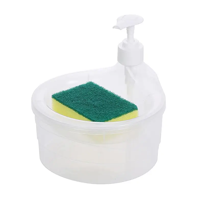 Mantén tu cocina siempre ordenada y limpia con este dispensador de jabón con esponja integrada, práctico y funcional para el uso diario. Su diseño todo en uno te permite dosificar el detergente con solo presionar, evitando desperdicios y manteniendo la esponja siempre a la mano.