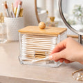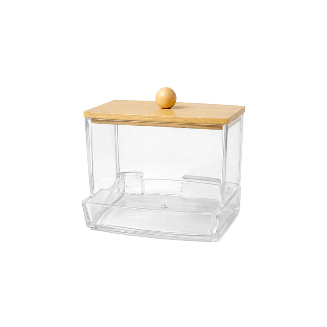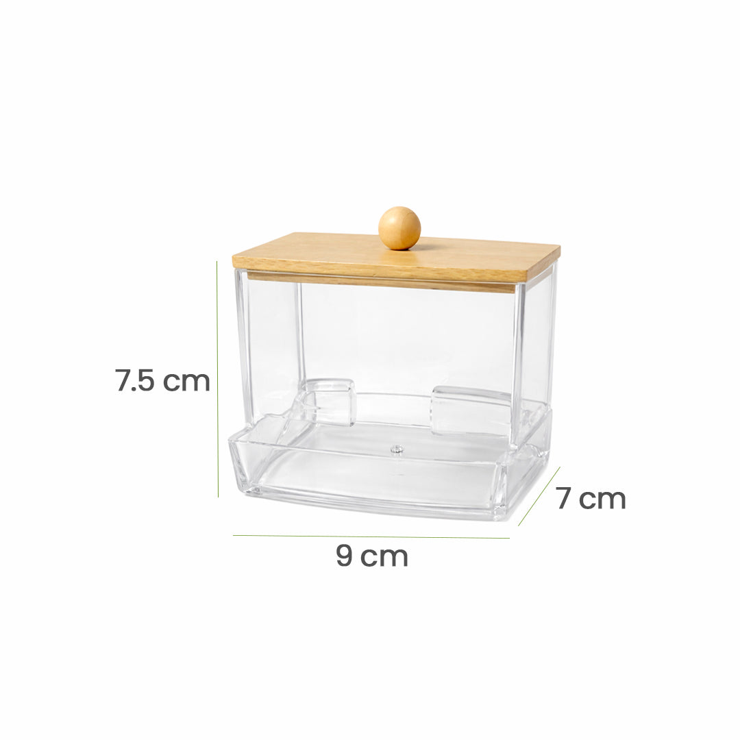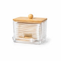 Dispensador de Hisopos de Acrílico con Tapa de Bambú