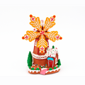 Esta encantadora villa navideña tipo casa de jengibre combina colores vibrantes, detalles festivos y un hermoso molino en forma de copo de nieve que gira al encenderla. Ideal para crear un ambiente cálido y lleno de fantasía en tu hogar.