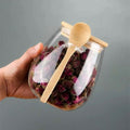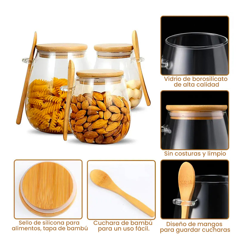 Frasco de Vidrio con Tapa de Bambú y Cuchara