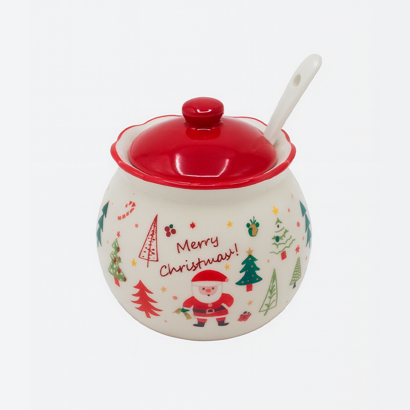 Dale un toque mágico y tierno a tu cocina, mesa o estación de café con este encantador frasco navideño. Fabricado en cerámica de alta calidad, luce un diseño lleno de espíritu festivo: arbolitos, estrellitas, regalos y un adorable Santa Claus que le da vida a cualquier espacio.