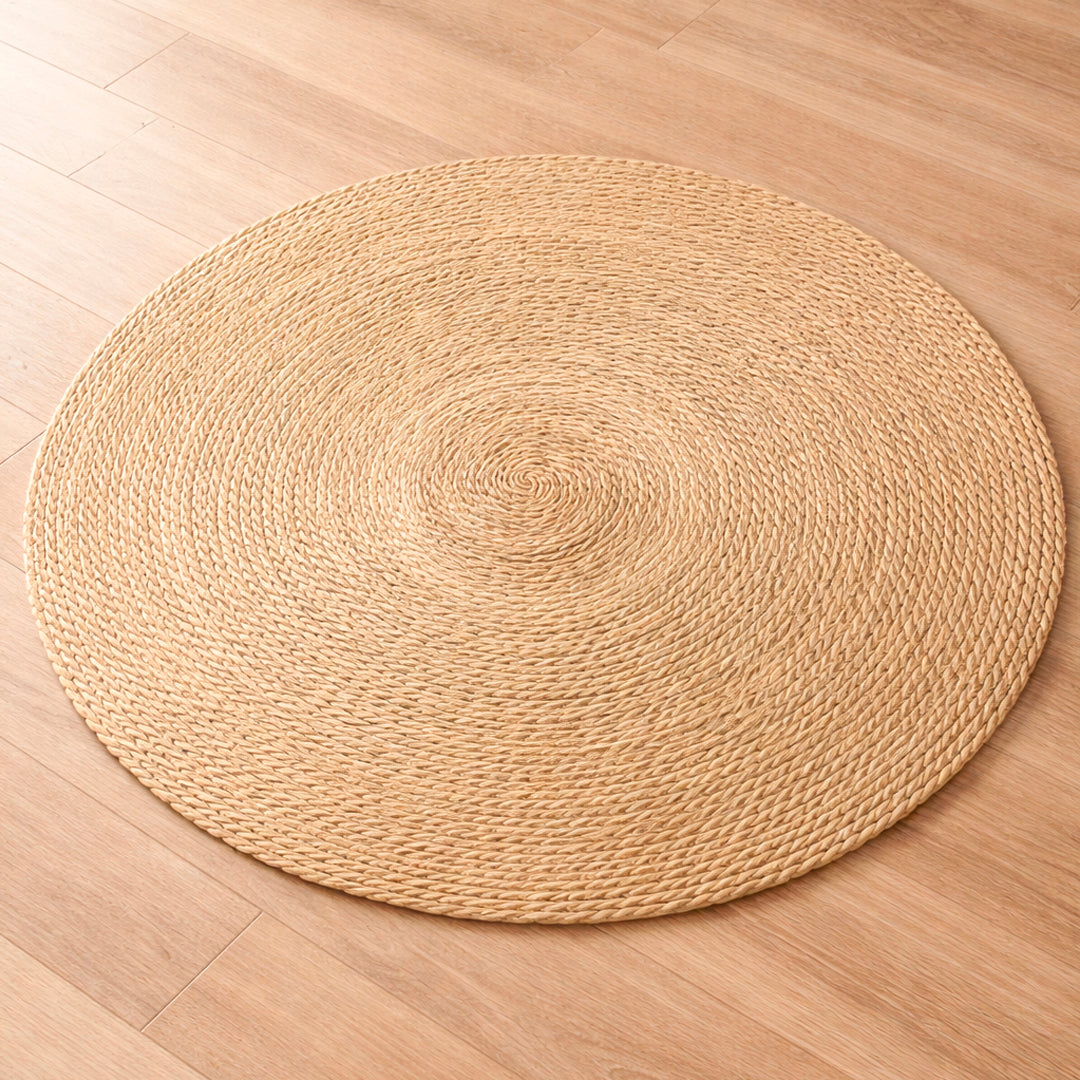 Aporta calidez, estilo y naturalidad a cualquier espacio con esta alfombra redonda de fibra natural, cuidadosamente tejida a mano con un diseño circular que realza la textura y el carácter orgánico del material.