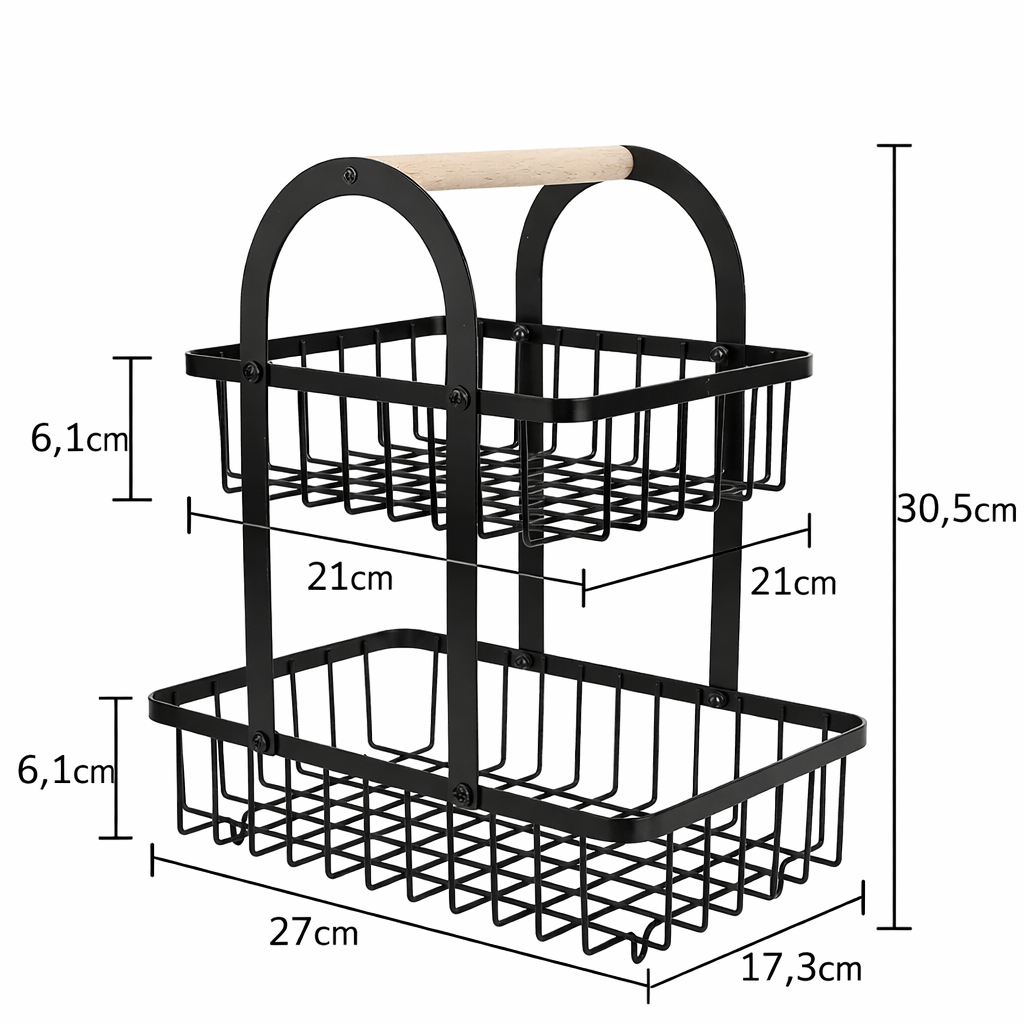 Fabricado en metal resistente con canastillas tipo rejilla, permite una correcta ventilación para conservar los alimentos frescos por más tiempo. Incorpora una asa superior de madera que facilita su traslado y aporta un toque moderno y decorativo.