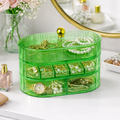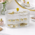 El joyero está dividido en tres bandejas giratorias, cada una diseñada para diferentes tipos de accesorios: