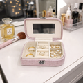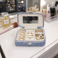 Cuenta con un interior suave que protege tus joyas contra rayones y un espejo incorporado que facilita su uso diario, perfecto para maquillarte o elegir tus accesorios en cualquier momento.