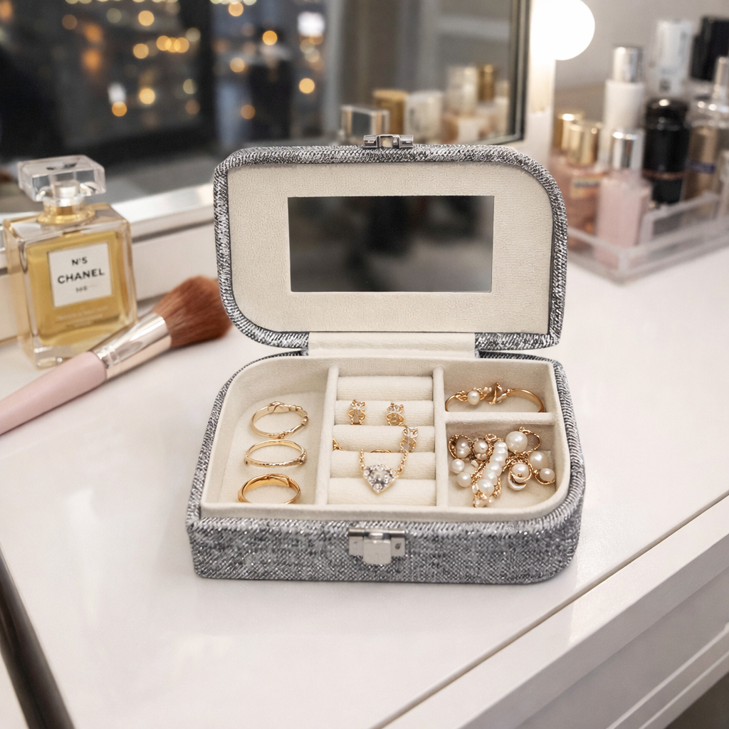 Gracias a su tamaño compacto, es ideal para colocar en el tocador, llevar de viaje o mantener tus accesorios organizados sin ocupar mucho espacio.
