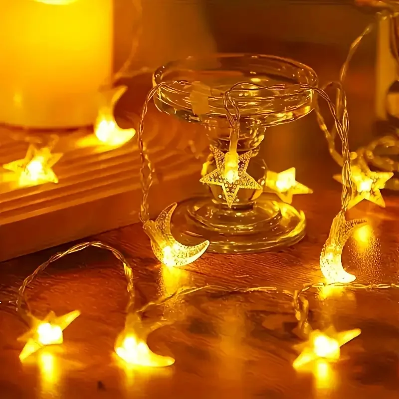 Dale un toque mágico a tus espacios con estas hermosas luces cálidas en forma de 🌙 y ⭐.