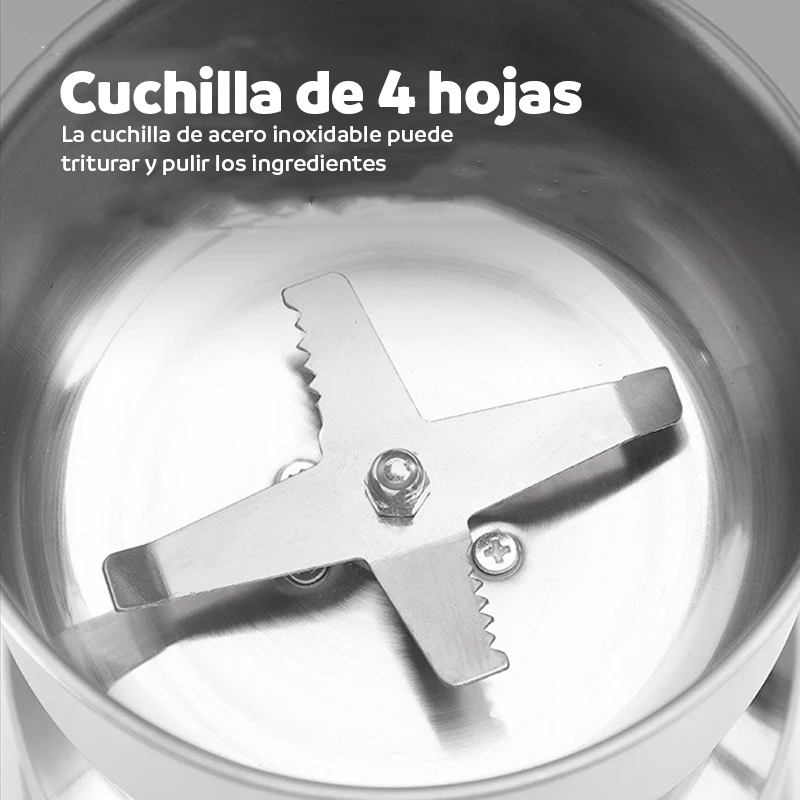 🔪 Cuchilla de 4 hojas en acero inoxidable: tritura con precisión todo tipo de granos.