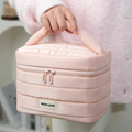 Organiza tu maquillaje, skincare y accesorios favoritos con este neceser acolchado Been Love, diseñado para quienes aman el orden sin perder el estilo. Su tamaño amplio, textura acolchada y colores suaves lo convierten en el compañero ideal para casa, la oficina, el gym o viajes.