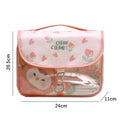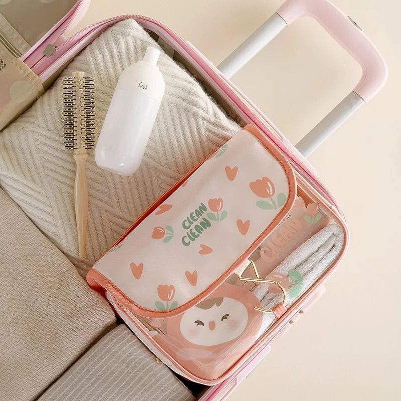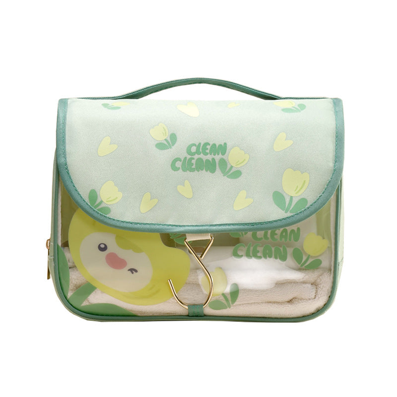 El bolsillo grande es adecuado para almacenar artículos grandes como limpiador facial, y el bolsillo frontal con cremallera puede almacenar pasta de dientes y cepillo de dientes. Hay algunos cosméticos pequeños en las dos bolsas de malla.