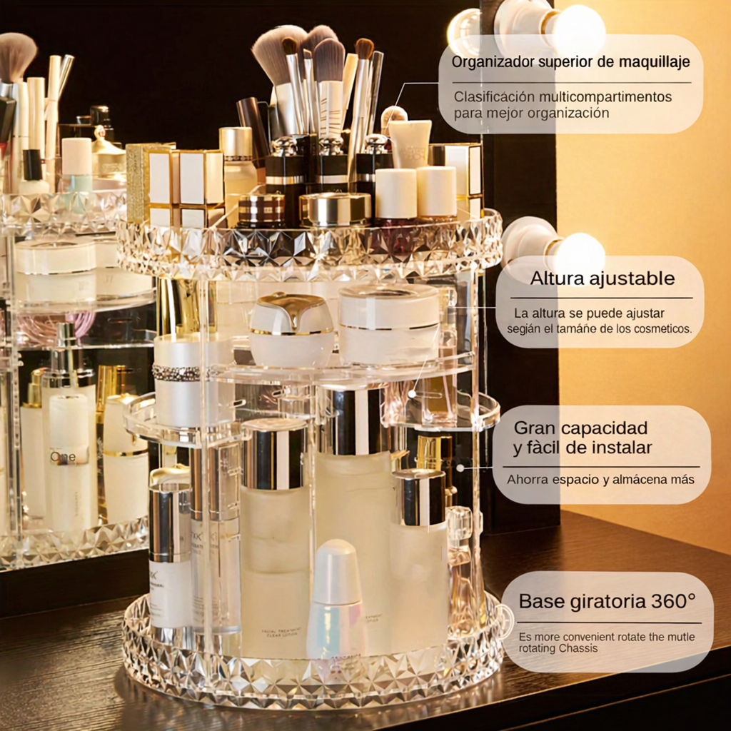 Organizador Giratorio de Maquillaje 360° – Gran Capacidad y Altura Ajustable