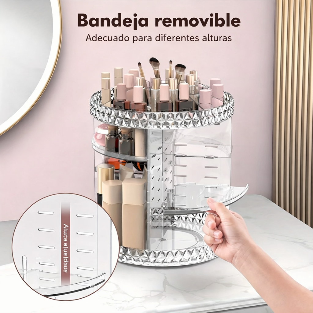 Mantén todos tus cosméticos ordenados, visibles y siempre al alcance de la mano. Este organizador giratorio 360° combina diseño elegante con máxima funcionalidad, ideal para tocadores, baños o dormitorios.