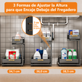 Este organizador es la solución perfecta para mantener todo ordenado debajo del fregadero, incluso en espacios complicados con tuberías.