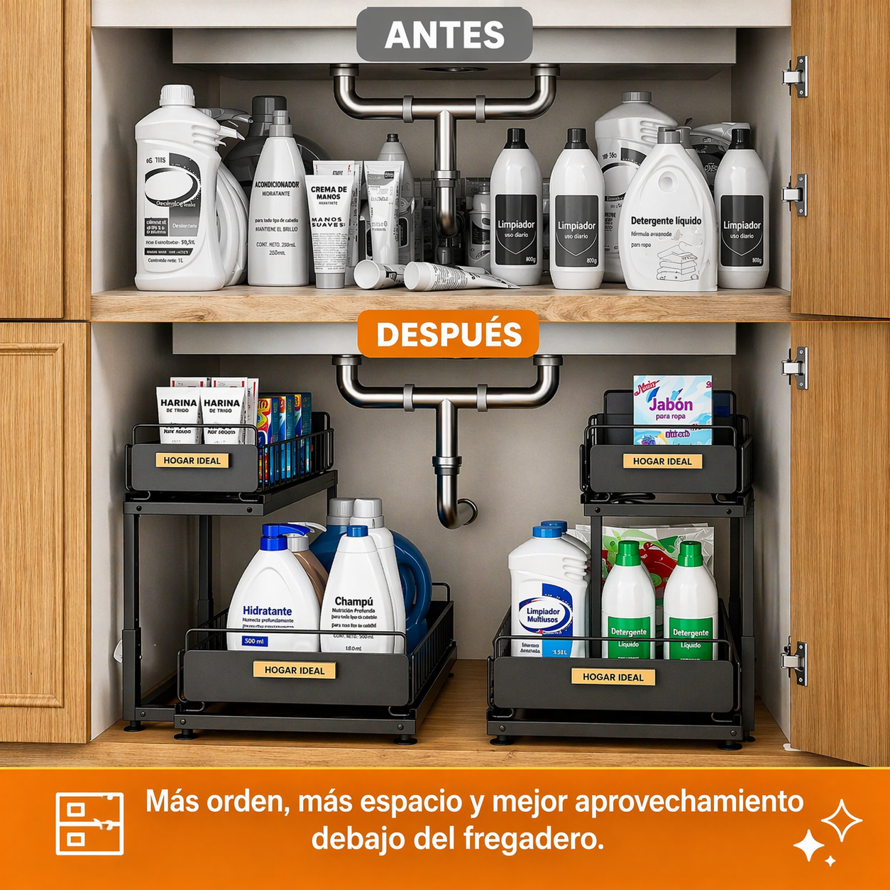 Perfecto para organizar detergentes, productos de limpieza, botellas, alimentos o accesorios.