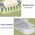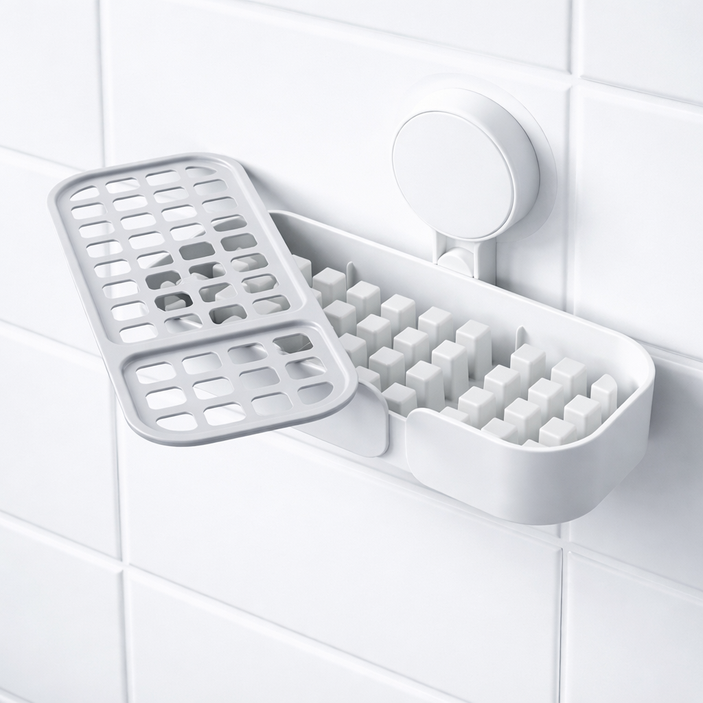 Su estructura elevada con rejilla permite que el agua escurra rápidamente 💧, evitando la acumulación de humedad y prolongando la duración del jabón. El sistema de drenaje inferior facilita la salida del agua, manteniendo el jabón seco, limpio y listo para el próximo uso.