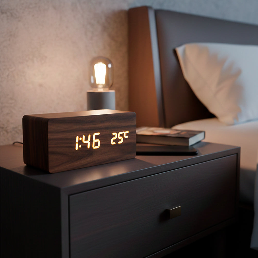 Reloj Digital LED despertador de Madera