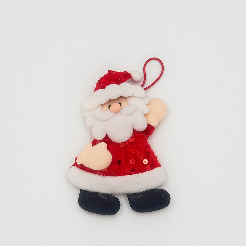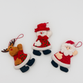 Este hermoso set incluye tres personajes clásicos de la Navidad: Papá Noel, un muñeco de nieve y un reno, todos con trajes rojos llenos de brillo y detalles en tela suave. Ideales para colgar en el árbol, guirnaldas o decorar cualquier rincón del hogar.
