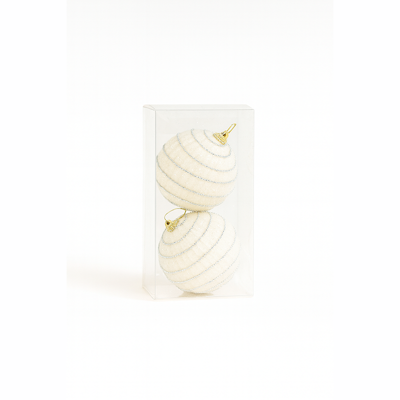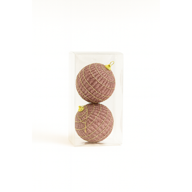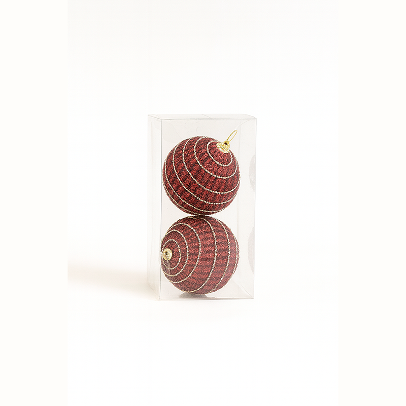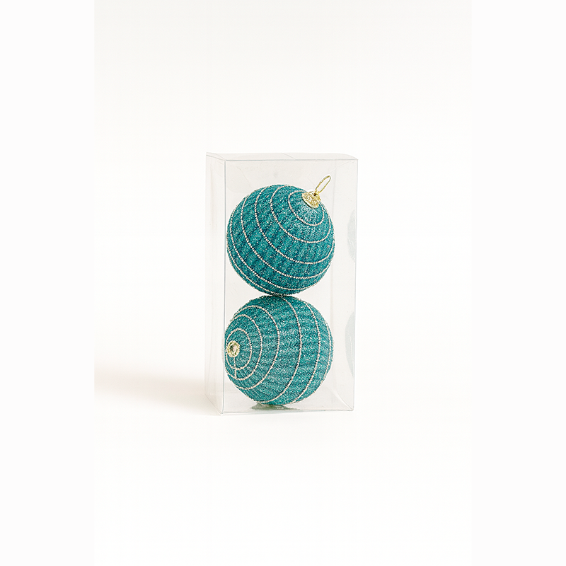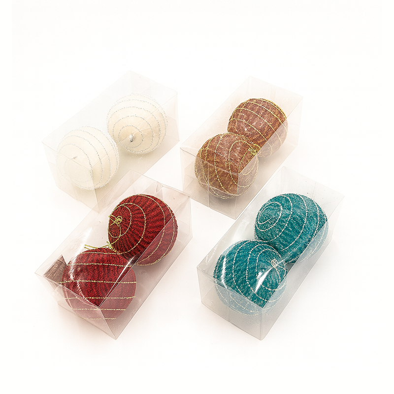 Estas elegantes esferas decorativas vienen en set de 2 unidades y están disponibles en varios colores clásicos de la temporada: rojo, dorado, blanco y turquesa. Su diseño con líneas brillantes y textura aterciopelada aportará un toque de sofisticación a cualquier tipo de decoración navideña.