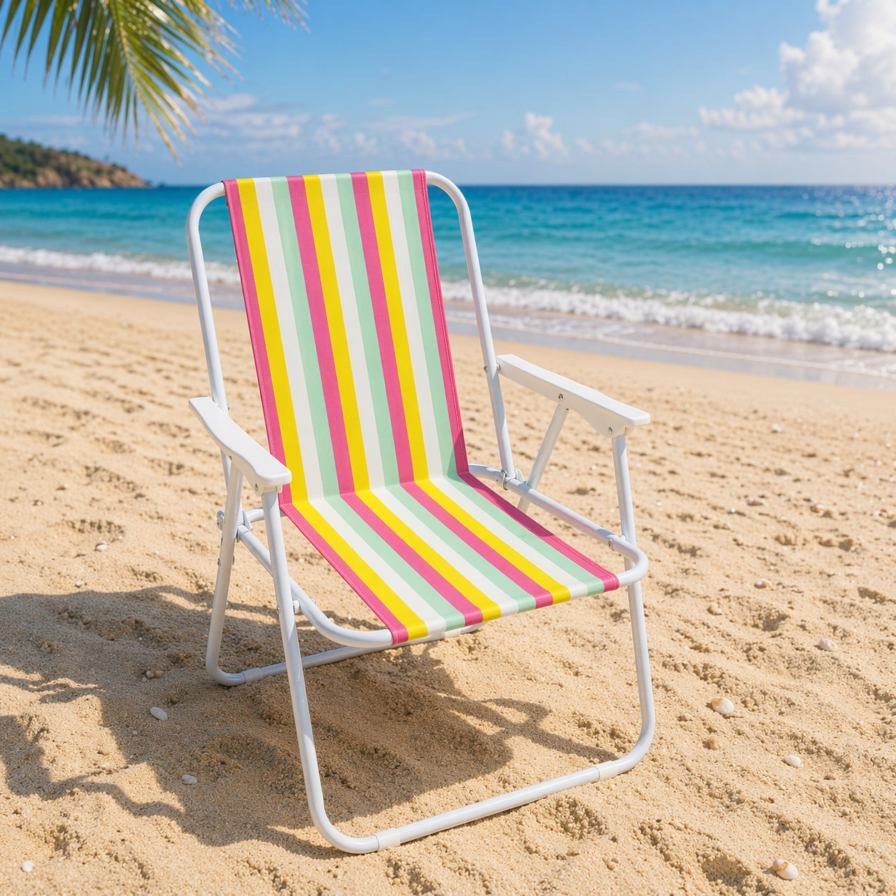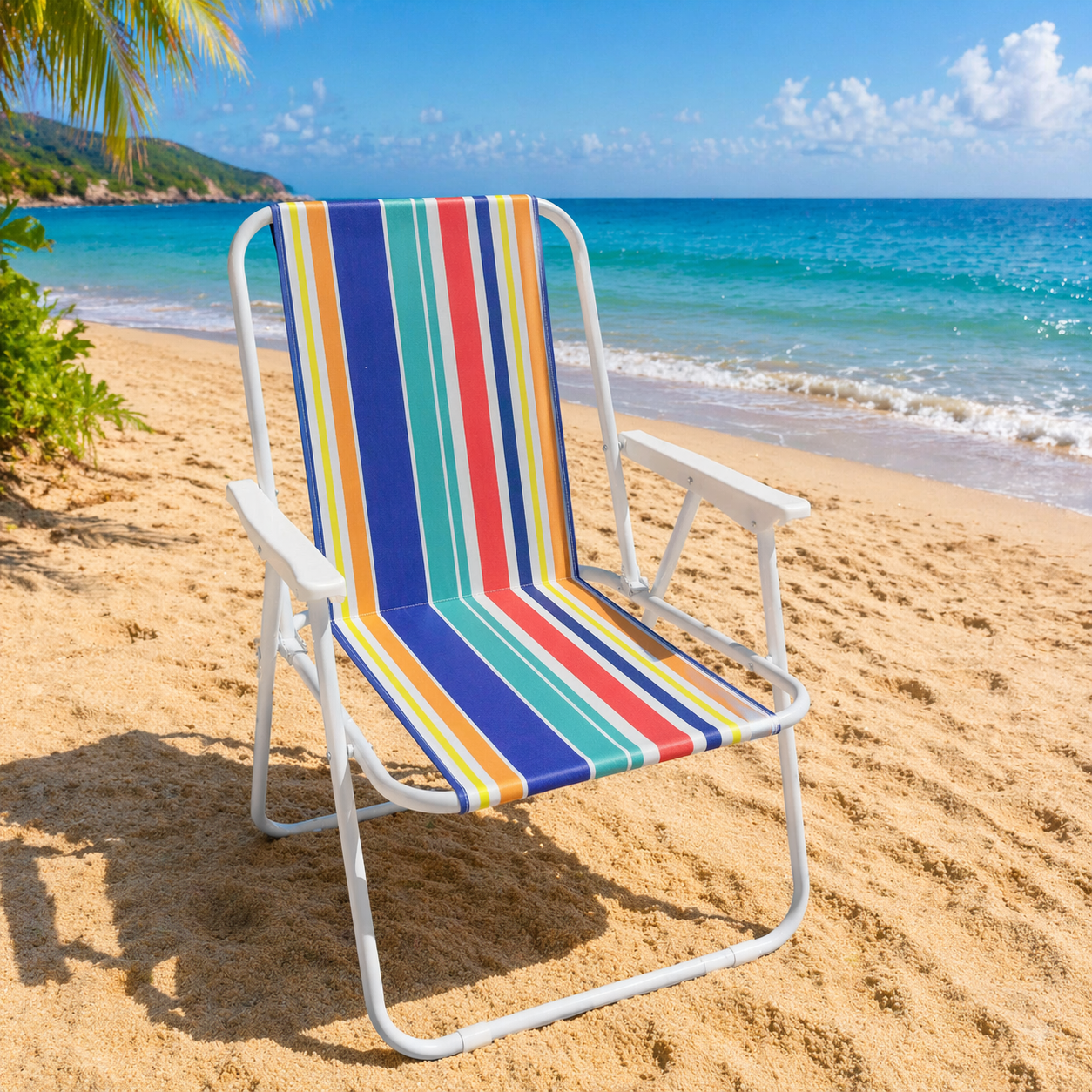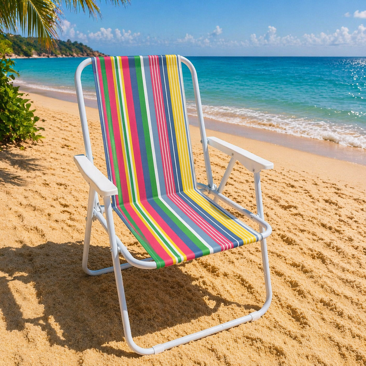 Disfruta del máximo confort en tus días de descanso con esta práctica y resistente silla de playa plegable, diseñada para acompañarte en cada momento al aire libre.