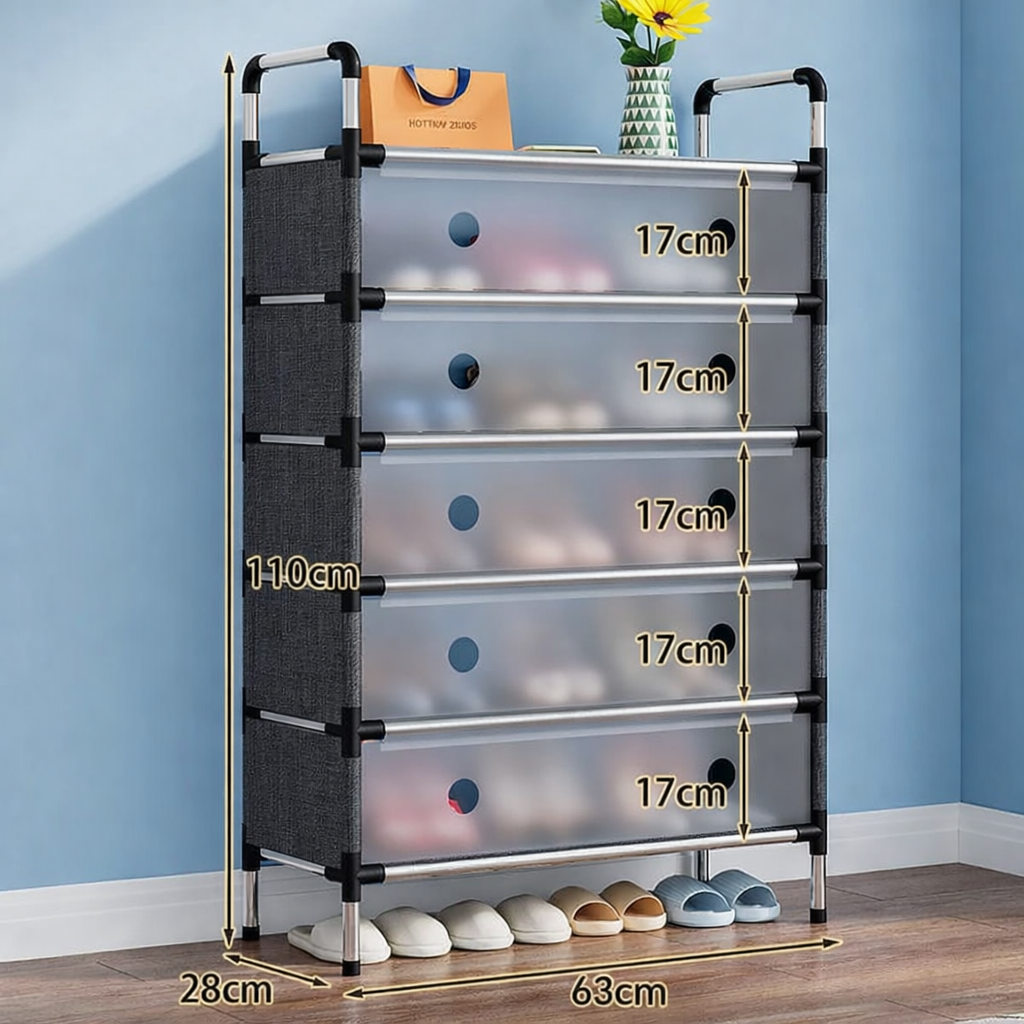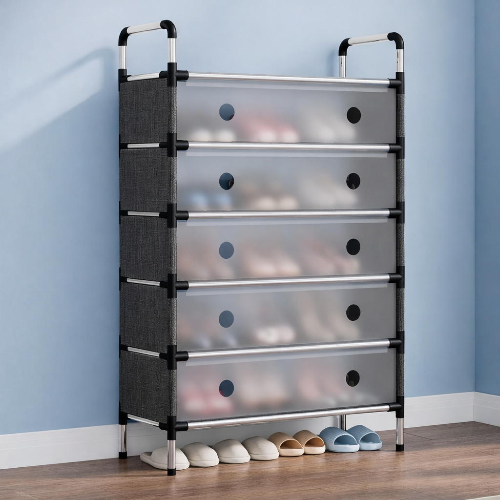 Este zapatero vertical combina gran capacidad, diseño moderno y ahorro de espacio, ideal para cualquier hogar.