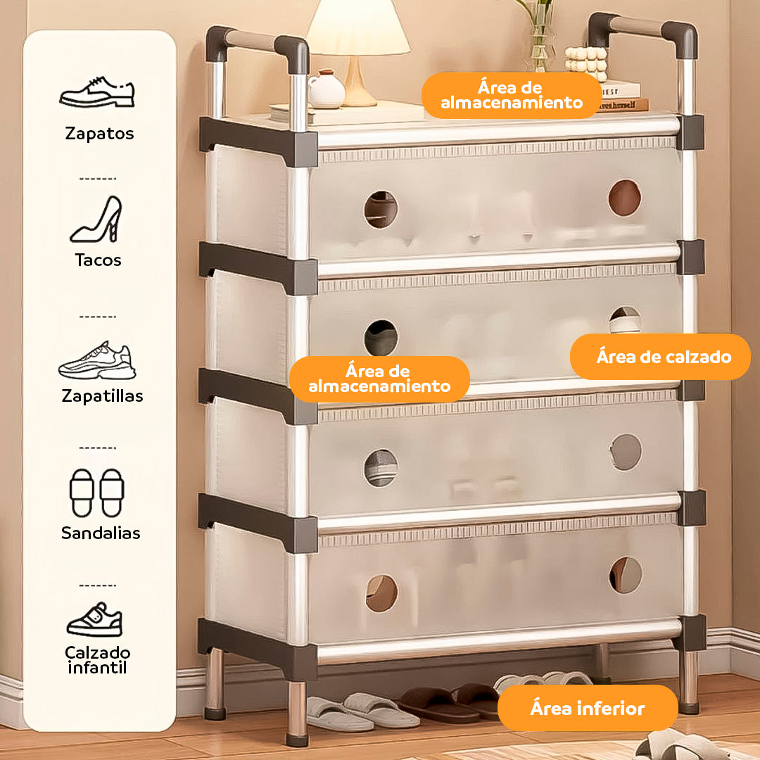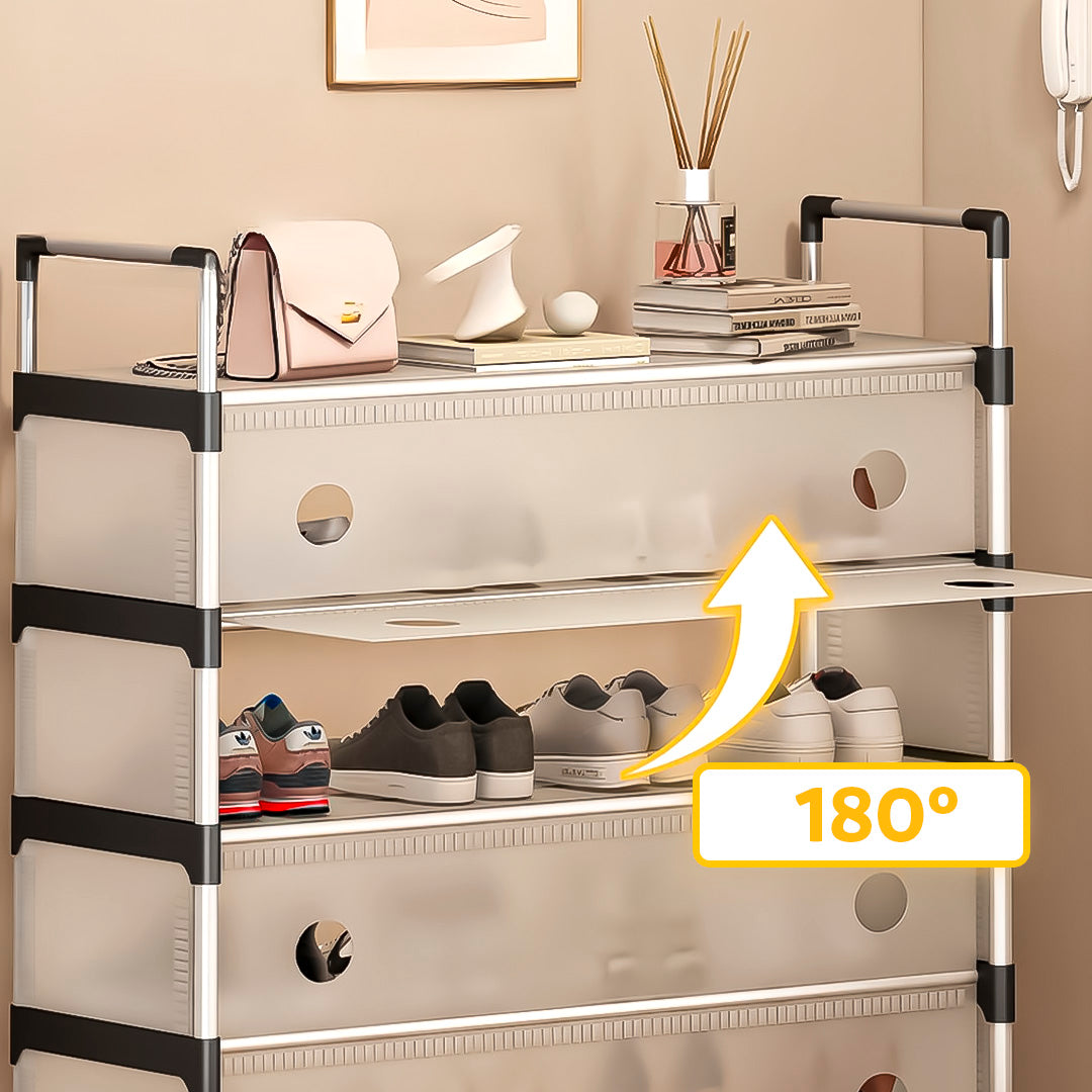 El zapatero de 6 niveles es una solución cómoda y práctica para organizar el espacio. Permite almacenar de forma compacta distintos tipos de calzado: desde botas y zapatillas hasta zapatos y sandalias.