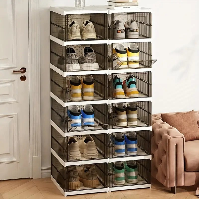 👟✨ Organizador de zapatos apilable con puerta frontal ✨👟